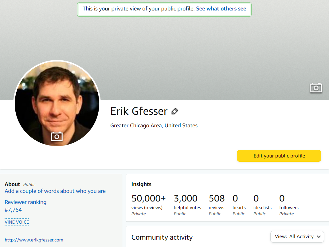 Exactly two months ago, midway into my five-month hiatus writing for this blog, the 508 reviews I had written for Amazon up to that point in time hit the milestone of 3000 helpful votes, with my ranking standing at #7,764 in a list containing many millions of reviewers.