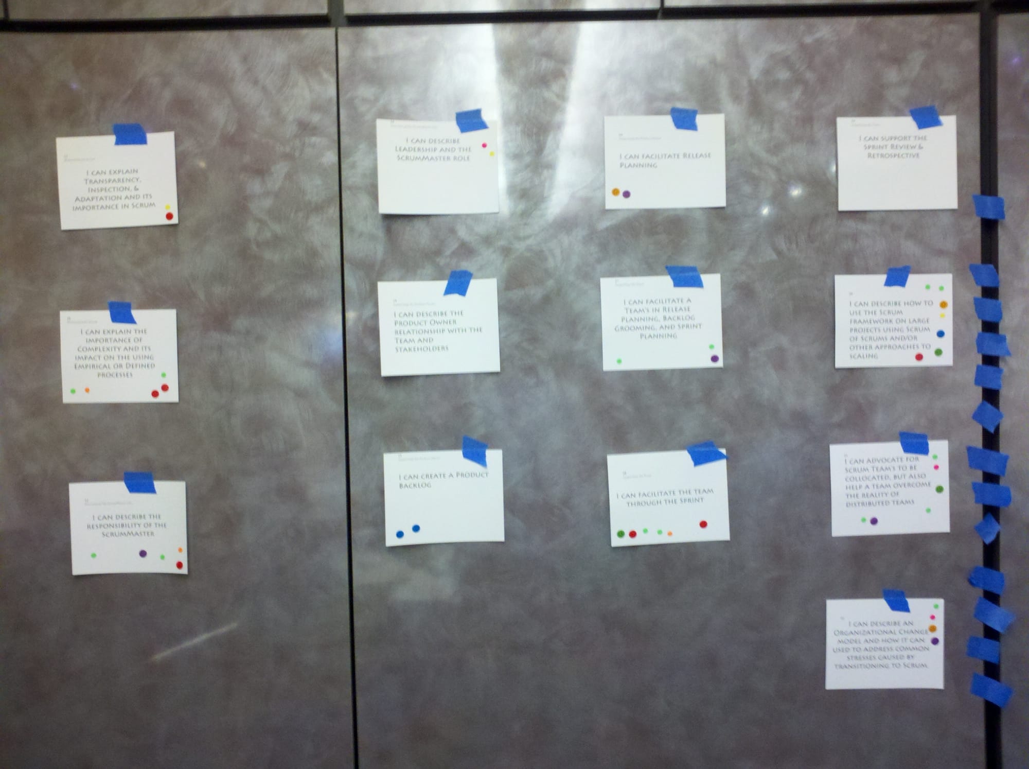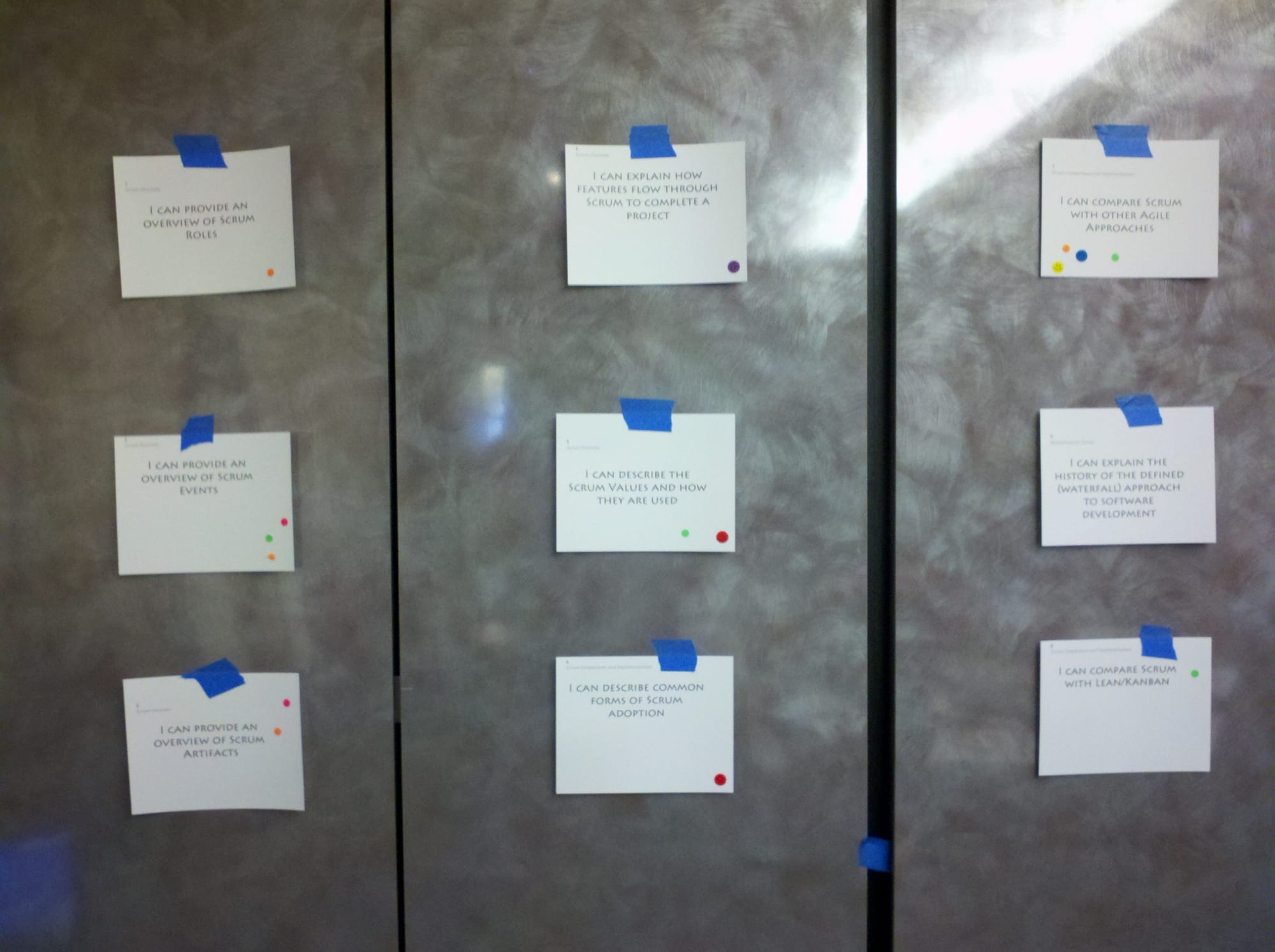 - The 5 topics I had chosen were items I had not yet encountered to any significant degree in the workplace or graduate school, such as specific artifacts and distributed Scrum. The plan was then to apply post-it notes to each of the 5 topics as they were covered in class.