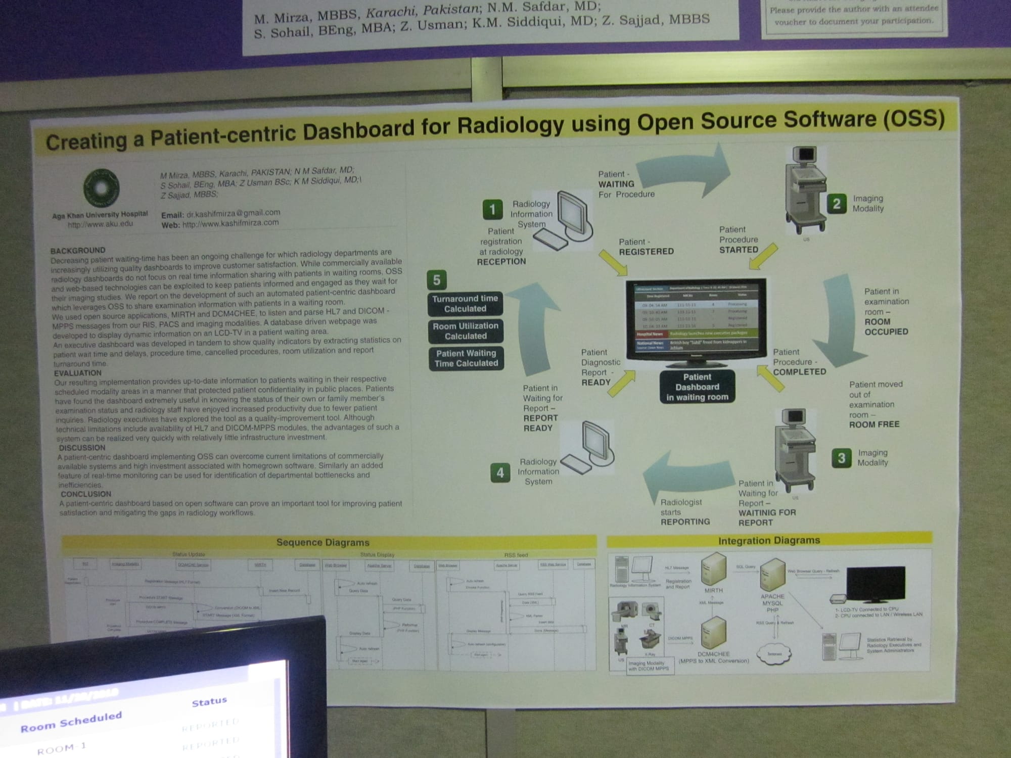 Other than the Informatics subspecialty, I also spent some time taking a look at Quality Improvement, where dozens of hospitals demonstrated how they integrated software (much of it open source) into their processes to solve cycle-time and other quality problems. I talked to the exhibitor of "Creating a Patient-centric Dashboard for Radiology using Open Source Software", for example, who demonstrated a dashboard very similar to the software I developed with some of my fellow consultant colleagues for a past client, and the hospital news feed at the bottom of the screen looked very similar to what I have seen at some area hospitals. Interestingly enough, his software incorporated an open source product called Mirth which I integrated into one of my proof of concepts for a past client. I've already posted about this topic before, so suffice it to say I will continue to not recommend the software to clients unless there is demonstrable improvement, but it was good to hear that the software was sufficient for this particular hospital (and that this was the only exhibit that mentioned Mirth this year).
