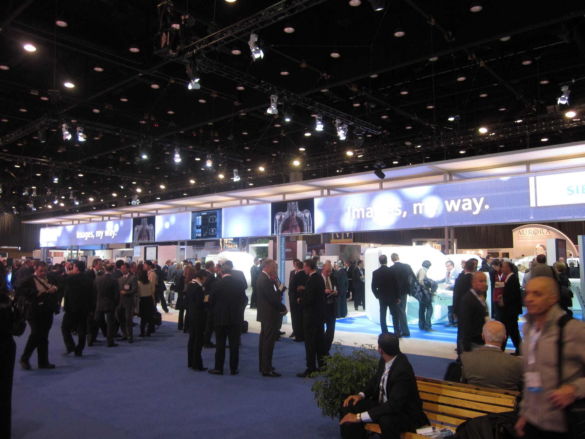 If you haven't attended trade shows like RSNA before, I recommend you make an effort to do so sometime. It's a good opportunity to investigate both the research space and the marketplace in one shot if you can handle the walking and you are comfortable talking with sales representatives. I took quite a few photos, but it's not possible to give you a feel for the commercial space with a photo (none of the three rooms fit in a single photo because each is so huge), so I've attached a couple photos that show one of the largest exhibits in terms of footprint (Siemens) along with a photo of a group of firms from Germany (there were also groups like this from South Korea and China).